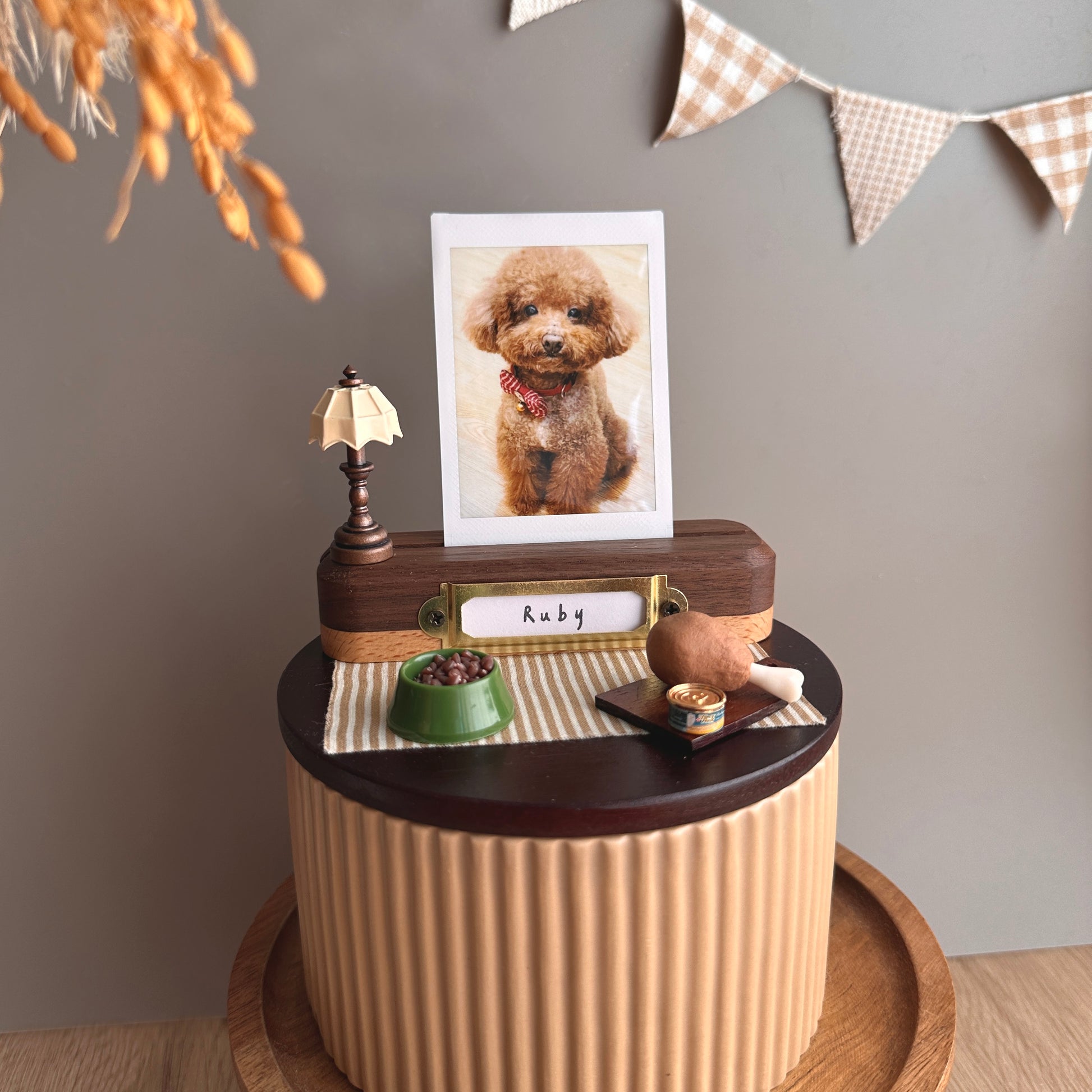 👉🏻日式午後:客製寵物照片x1 , 客製化名字x1 , 照片架骨灰罐 x1 ,立燈(不會亮) x1 ,小地墊 x1