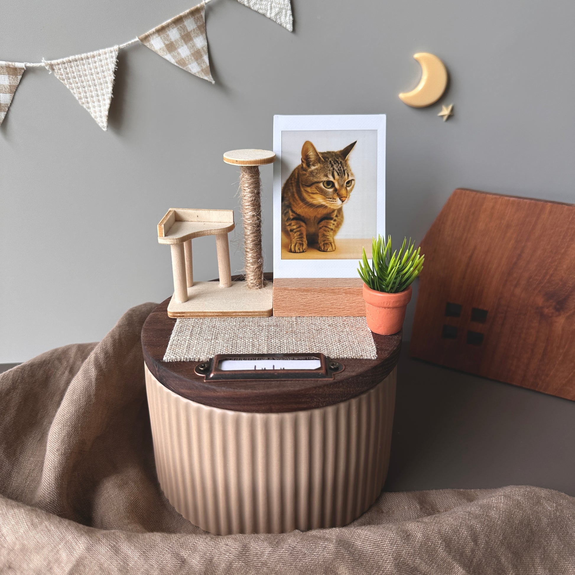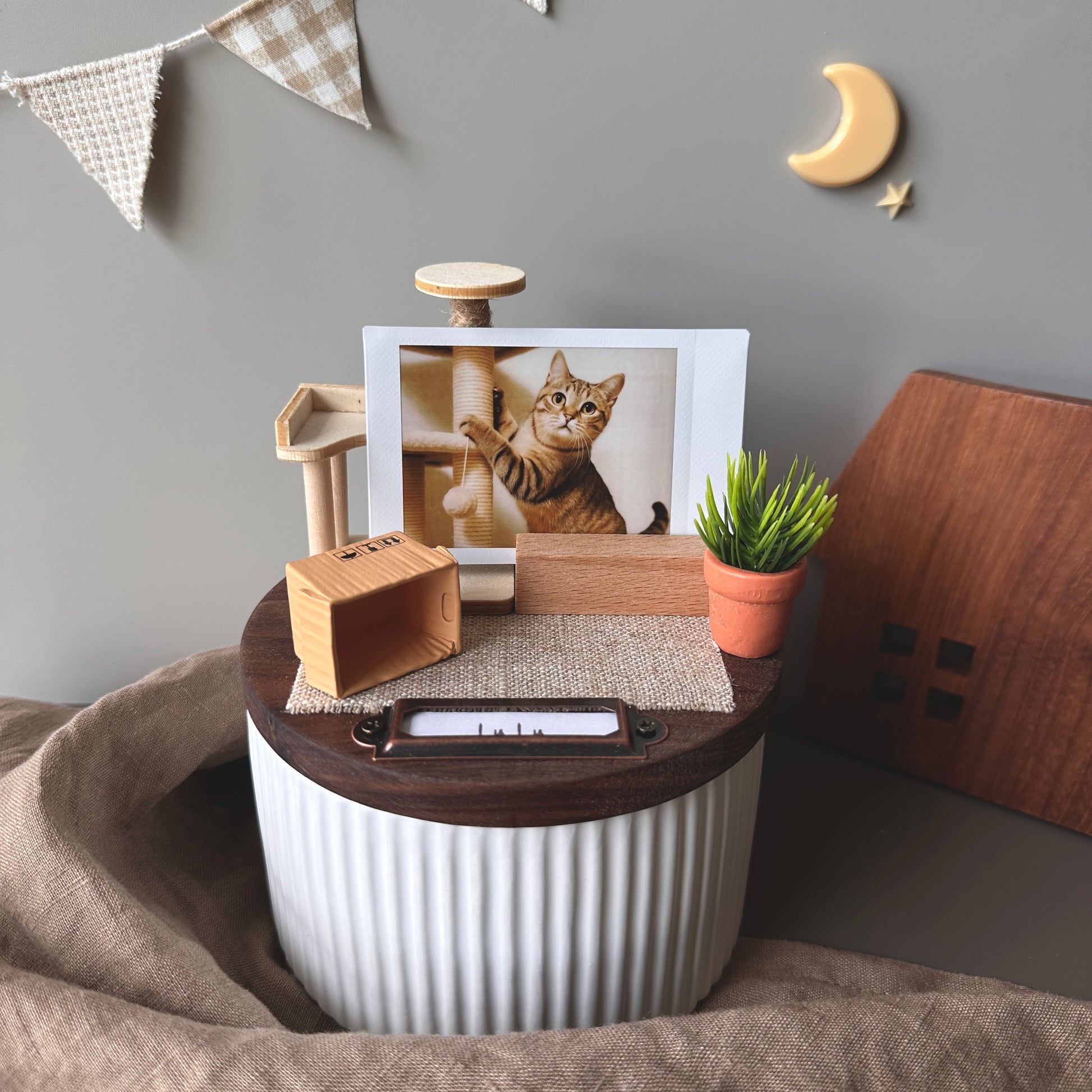 👉🏻貓宅午後:『客製寵物照片x1 , 客製化名字x1 , 照片架骨灰罐 x1 ,貓跳台 x1, 貓草盆 x1 , 小地墊 x1 』( 其他品項為加購品項,請洽設計師)